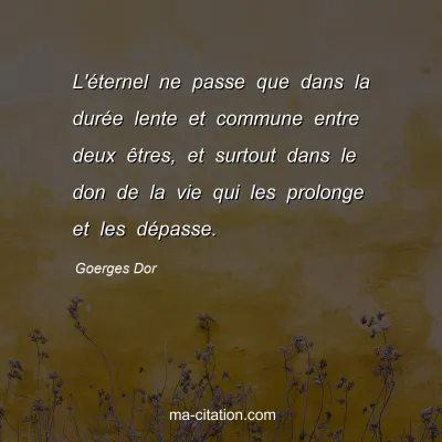 L'éternel ne passe que dans la durée lente et commune entre deux êtres, et surtout dans le don de la vie qui les prolonge et les dépasse.