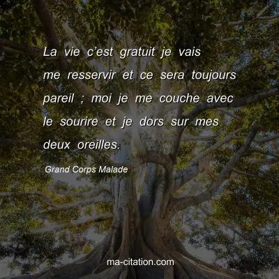 La vie c’est gratuit je vais me resservir et ce sera toujours pareil ; moi je me couche avec le sourire et je dors sur mes deux oreilles.