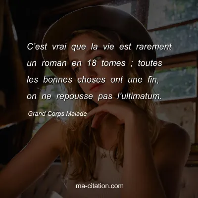 C’est vrai que la vie est rarement un roman en 18 tomes ; toutes les bonnes choses ont une fin, on ne repousse pas l’ultimatum.