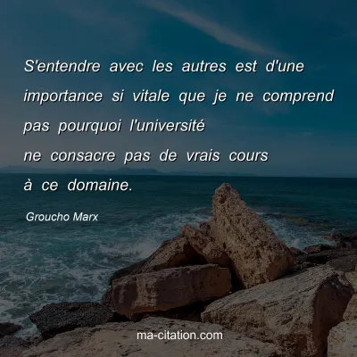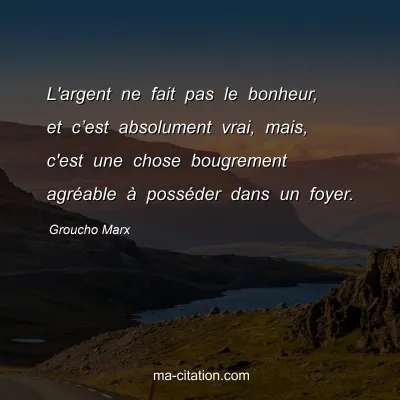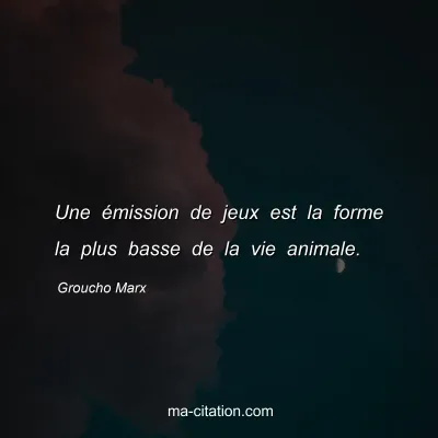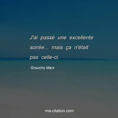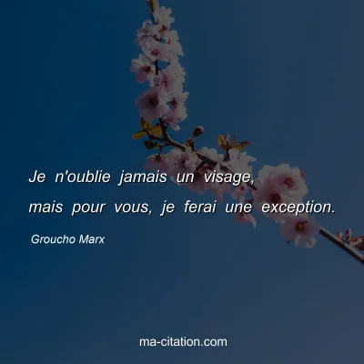 Julius Henry "Groucho" Marx, plus connu sous le surnom de Groucho Marx était un comédien américain réputé. Il s'est lancé dans une carrière cinématographique avec ses frères : « Marx Brothers » et a tourné avec eux son premier film « Coconuts ». Groucho s'est inventé un personnage reconnaissable par une démarche de poulet faite de grands pas, une moustache et de gros sourcils imposants, des petites lunettes, toujours avec un cigar et un accent new-yorkais. Ce personnage arrogant usant de réparties à l'humour corrosif fait de Groucho l'un des acteurs les plus célèbres des États-Unis. Il quittera finalement la scène du cinéma pour se lancer dans une carrière d'animateur avec l'émission You Bet Your Life qui connait un grand succès aux États-Unis.