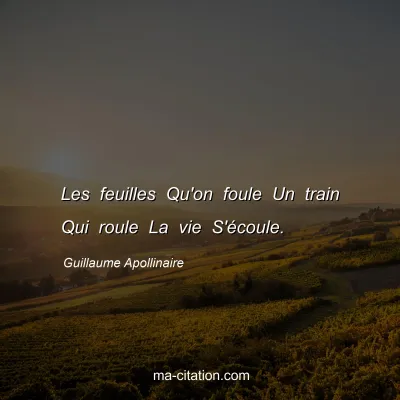 Les feuilles Qu'on foule Un train Qui roule La vie S'écoule.