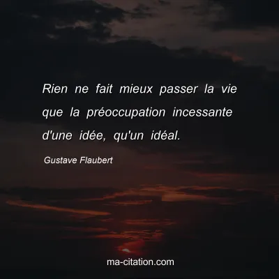 Rien ne fait mieux passer la vie que la préoccupation incessante d'une idée, qu'un idéal.