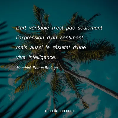 L’art véritable n’est pas seulement l’expression d’un sentiment mais aussi le résultat d’une vive intelligence.