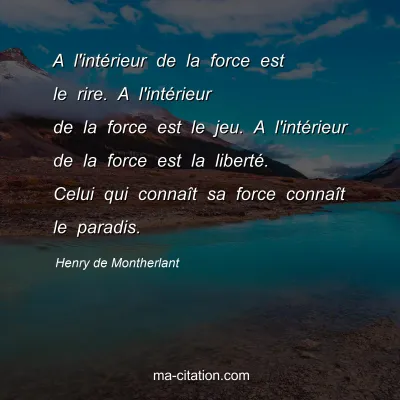 A l'intérieur de la force est le rire. A l'intérieur de la force est le jeu. A l'intérieur de la force est la liberté. Celui qui connaît sa force connaît le paradis.