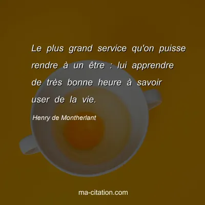 Le plus grand service qu'on puisse rendre à un être : lui apprendre de très bonne heure à savoir user de la vie.