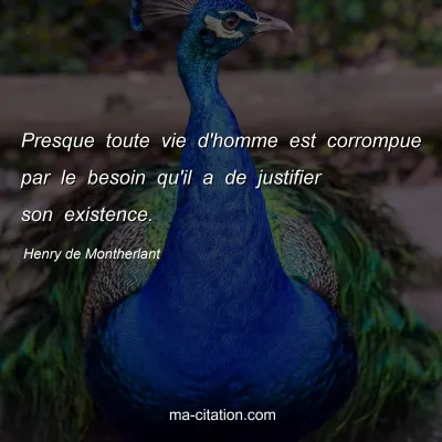 Presque toute vie d'homme est corrompue par le besoin qu'il a de justifier son existence.