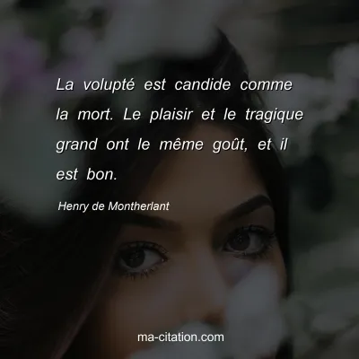 La volupté est candide comme la mort. Le plaisir et le tragique grand ont le même goût, et il est bon.