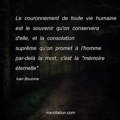 Le couronnement de toute vie humaine est le souvenir qu'on conservera d'elle, et la consolation suprême qu'on promet à l'homme par-delà la mort, c'est la "mémoire éternelle".