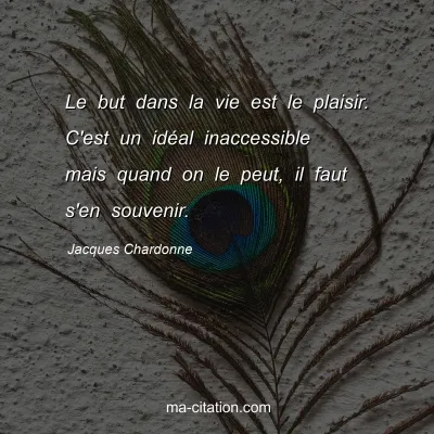 Le but dans la vie est le plaisir. C'est un idéal inaccessible mais quand on le peut, il faut s'en souvenir.