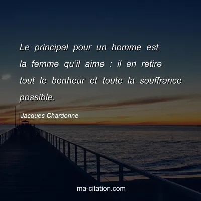 Le principal pour un homme est la femme qu’il aime : il en retire tout le bonheur et toute la souffrance possible.