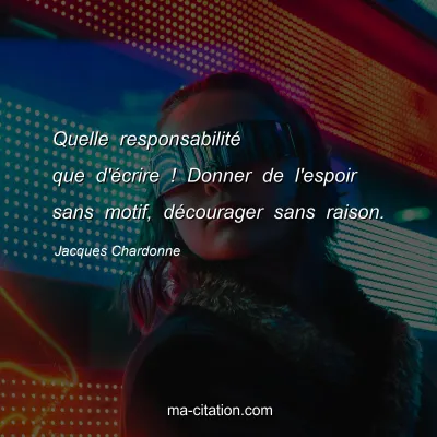 Quelle responsabilité que d'écrire ! Donner de l'espoir sans motif, décourager sans raison.