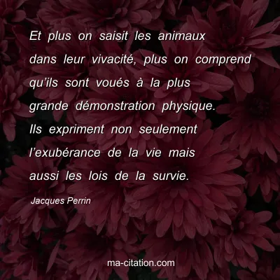 Et plus on saisit les animaux dans leur vivacité, plus on comprend qu’ils sont voués à la plus grande démonstration physique. Ils expriment non seulement l’exubérance de la vie mais aussi les lois de la survie.