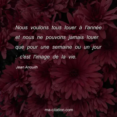 Nous voulons tous louer à l'année et nous ne pouvons jamais louer que pour une semaine ou un jour : c'est l'image de la vie.