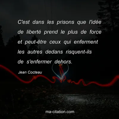 C'est dans les prisons que l'idée de liberté prend le plus de force et peut-être ceux qui enferment les autres dedans risquent-ils de s'enfermer dehors.