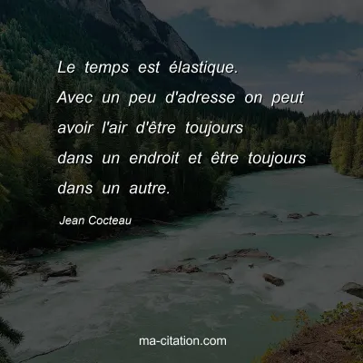 Le temps est élastique. Avec un peu d'adresse on peut avoir l'air d'être toujours dans un endroit et être toujours dans un autre.