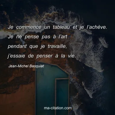 Je commence un tableau et je l’achève. Je ne pense pas à l’art pendant que je travaille, j’essaie de penser à la vie.