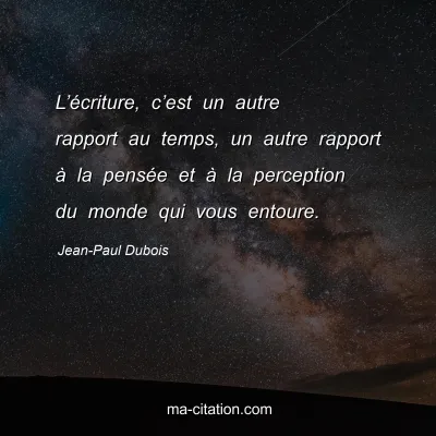 L’écriture, c’est un autre rapport au temps, un autre rapport à la pensée et à la perception du monde qui vous entoure.
