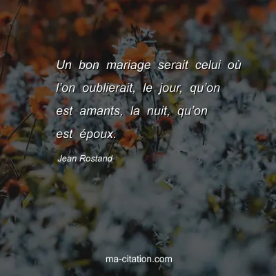 Un bon mariage serait celui où l’on oublierait, le jour, qu’on est amants, la nuit, qu’on est époux.