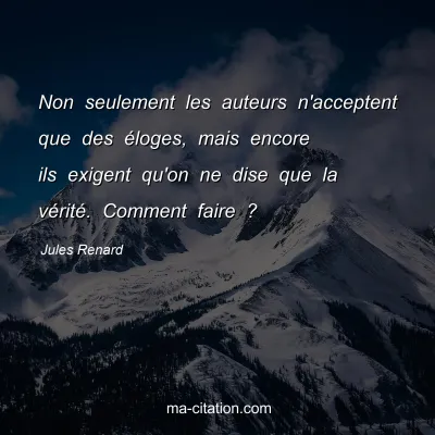 Non seulement les auteurs n'acceptent que des éloges, mais encore ils exigent qu'on ne dise que la vérité. Comment faire ?