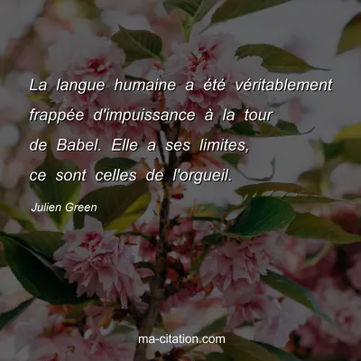 La langue humaine a été véritablement frappée d'impuissance à la tour de Babel. Elle a ses limites, ce sont celles de l'orgueil.
