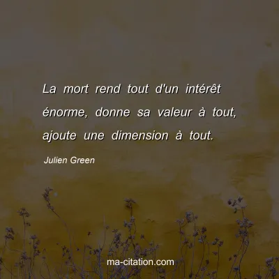 La mort rend tout d'un intérêt énorme, donne sa valeur à tout, ajoute une dimension à tout.