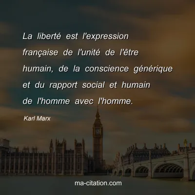 La liberté est l'expression française de l'unité de l'être humain, de la conscience générique et du rapport social et humain de l'homme avec l'homme.