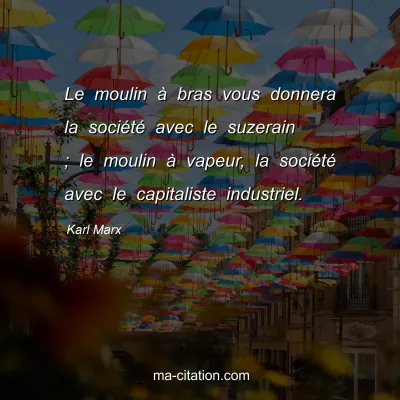 Le moulin à bras vous donnera la société avec le suzerain ; le moulin à vapeur, la société avec le capitaliste industriel.