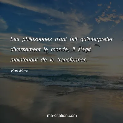 Les philosophes n'ont fait qu'interpréter diversement le monde, il s'agit maintenant de le transformer.