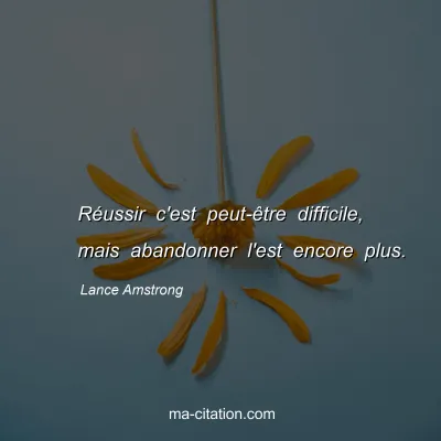 Réussir c'est peut-être difficile, mais abandonner l'est encore plus.