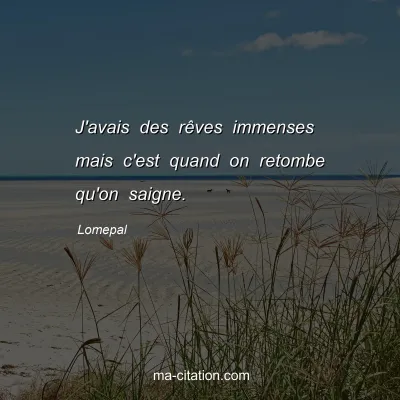J'avais des rêves immenses mais c'est quand on retombe qu'on saigne.