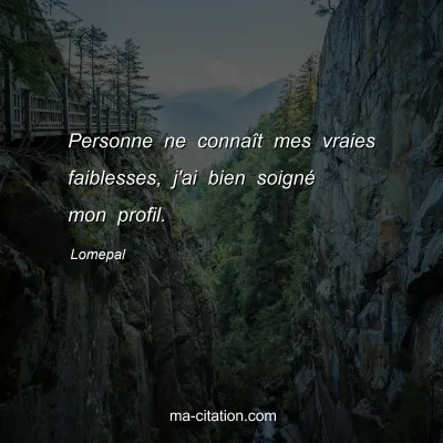 Personne ne connaît mes vraies faiblesses, j'ai bien soigné mon profil.
