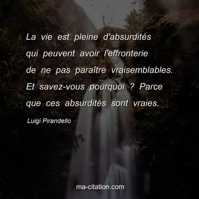 La vie est pleine d'absurdités qui peuvent avoir l'effronterie de ne pas paraître vraisemblables. Et savez-vous pourquoi ? Parce que ces absurdités sont vraies.
