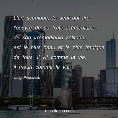 L'art scénique, le seul qui tire l'oeuvre de sa fixité irrémédiable, de son irrémédiable solitude, est le plus beau et le plus tragique de tous. Il vit comme la vie, il meurt comme la vie.