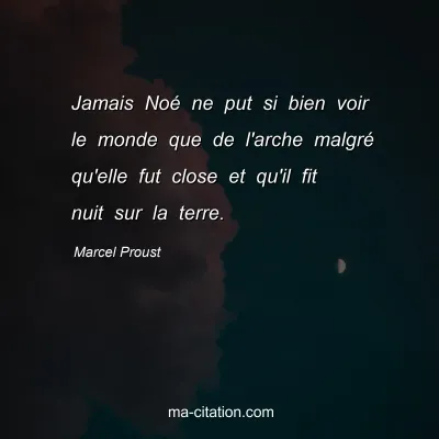 Jamais Noé ne put si bien voir le monde que de l'arche malgré qu'elle fut close et qu'il fit nuit sur la terre.