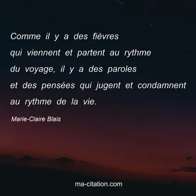 Comme il y a des fièvres qui viennent et partent au rythme du voyage, il y a des paroles et des pensées qui jugent et condamnent au rythme de la vie.