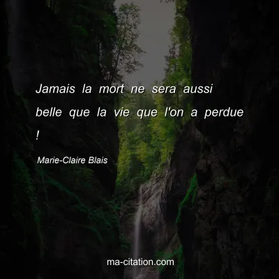 Jamais la mort ne sera aussi belle que la vie que l'on a perdue !