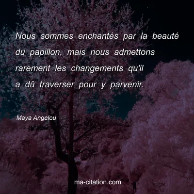 Nous sommes enchantés par la beauté du papillon, mais nous admettons rarement les changements qu'il a dû traverser pour y parvenir.
