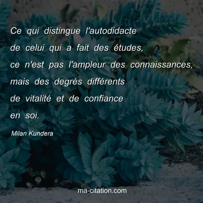Ce qui distingue l'autodidacte de celui qui a fait des études, ce n'est pas l'ampleur des connaissances, mais des degrés différents de vitalité et de confiance en soi.