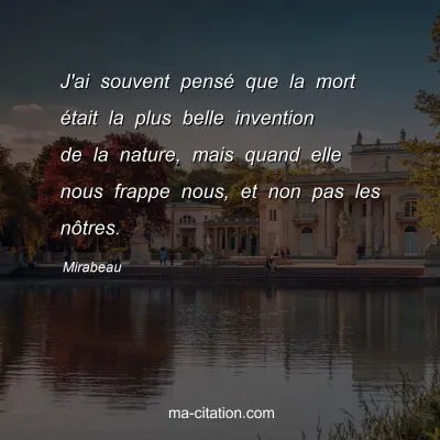 J'ai souvent pensé que la mort était la plus belle invention de la nature, mais quand elle nous frappe nous, et non pas les nôtres.