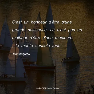 C'est un bonheur d'être d'une grande naissance, ce n'est pas un malheur d'être d'une médiocre ; le mérite console tout.
