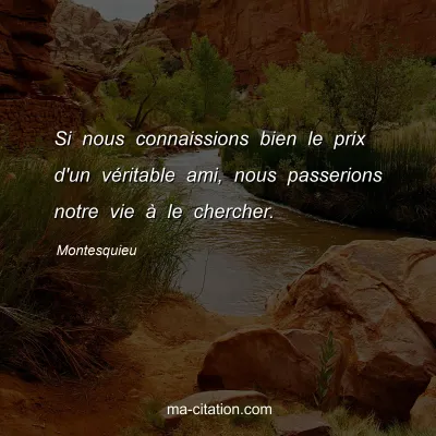 Si nous connaissions bien le prix d'un véritable ami, nous passerions notre vie à le chercher.