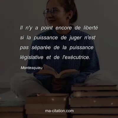 Il n'y a point encore de liberté si la puissance de juger n'est pas séparée de la puissance législative et de l'exécutrice.