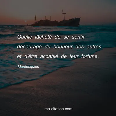 Quelle lâcheté de se sentir découragé du bonheur des autres et d'être accablé de leur fortune.