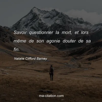 Savoir questionner la mort, et lors même de son agonie douter de sa fin.