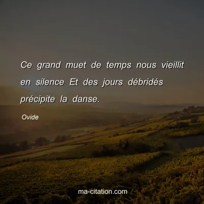 Ce grand muet de temps nous vieillit en silence Et des jours débridés précipite la danse.