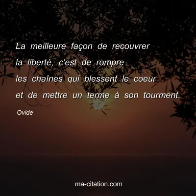 La meilleure façon de recouvrer la liberté, c'est de rompre les chaînes qui blessent le coeur et de mettre un terme à son tourment.