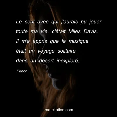 Le seul avec qui j'aurais pu jouer toute ma vie, c'était Miles Davis. Il m'a appris que la musique était un voyage solitaire dans un désert inexploré.