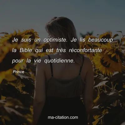 Je suis un optimiste. Je lis beaucoup la Bible qui est très réconfortante pour la vie quotidienne.
