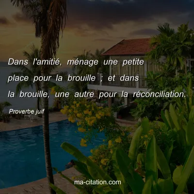 Dans l'amitié, ménage une petite place pour la brouille ; et dans la brouille, une autre pour la réconciliation.