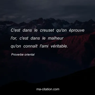 C'est dans le creuset qu'on éprouve l'or, c'est dans le malheur qu'on connaît l'ami véritable.
